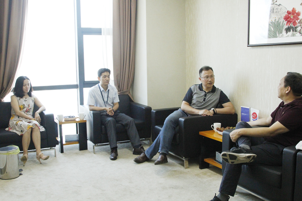 在律所贵宾室,张会长和陈律进行了亲切友好的交流。律所知识产权法律事务部主任张显显、青年律师高咏忠也列席了本次活动。